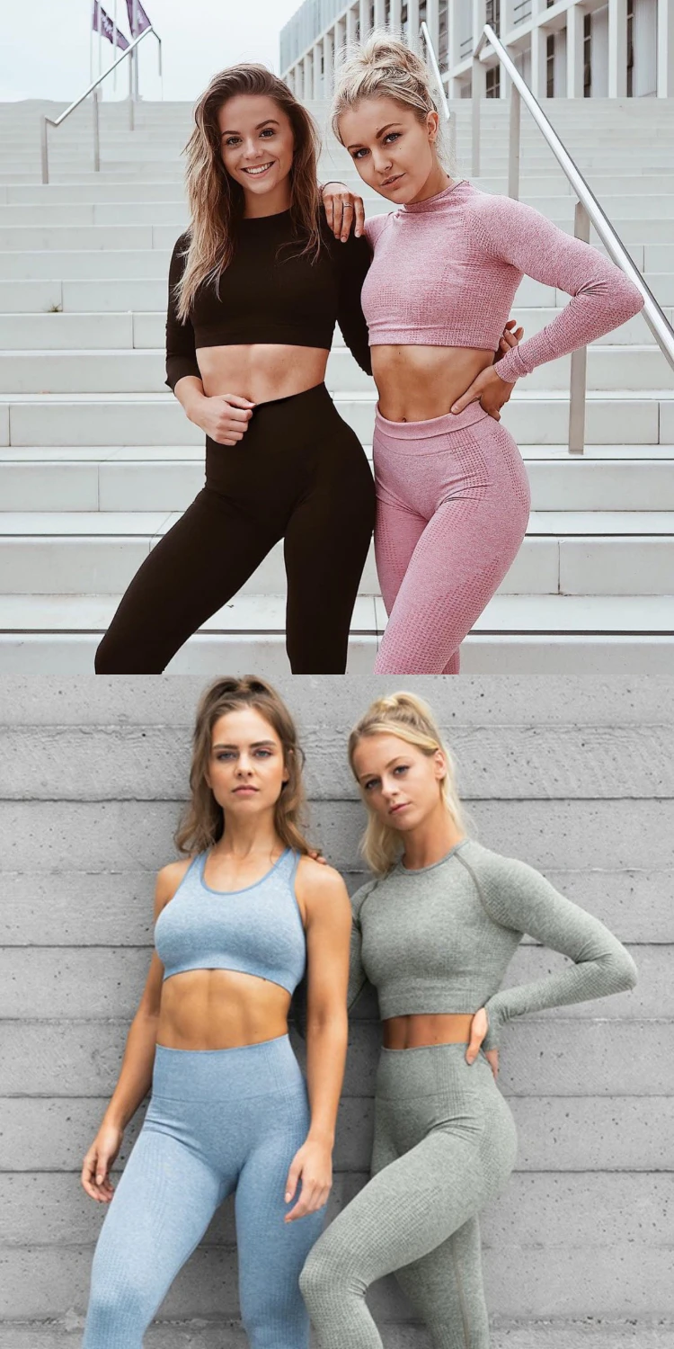 Abok Seamless Yoga Set Frauen Langarm Crop Top Hohe Taille Bauchkontrolle Sport Leggings Fitnessstudio Trainingskleidung Frauen Sportanzug Pink Set L Amazon De Bekleidung