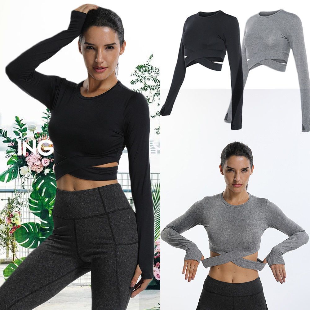 Frauen Langarm Crop Top Weibliche Sport Workout Gym Fitness Kleidung Damen Gym Top T Shirts Aliexpress