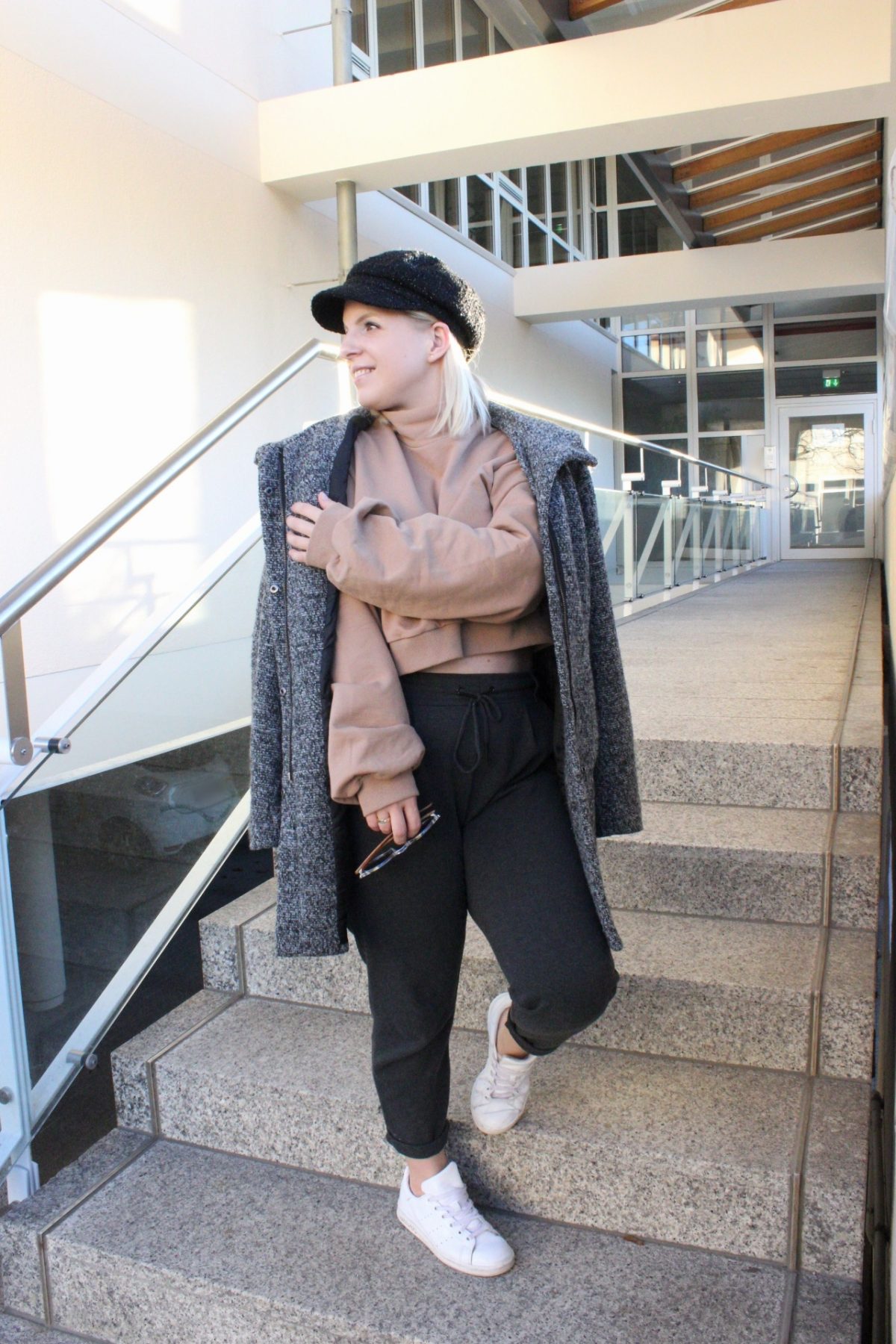 Outfitidee Mein Ubergangslook Von Winter Zu Fruhling Mit Wollmantel Kurzem Turtleneck Pullover Joggpants Sneaker Petitelovestoblog