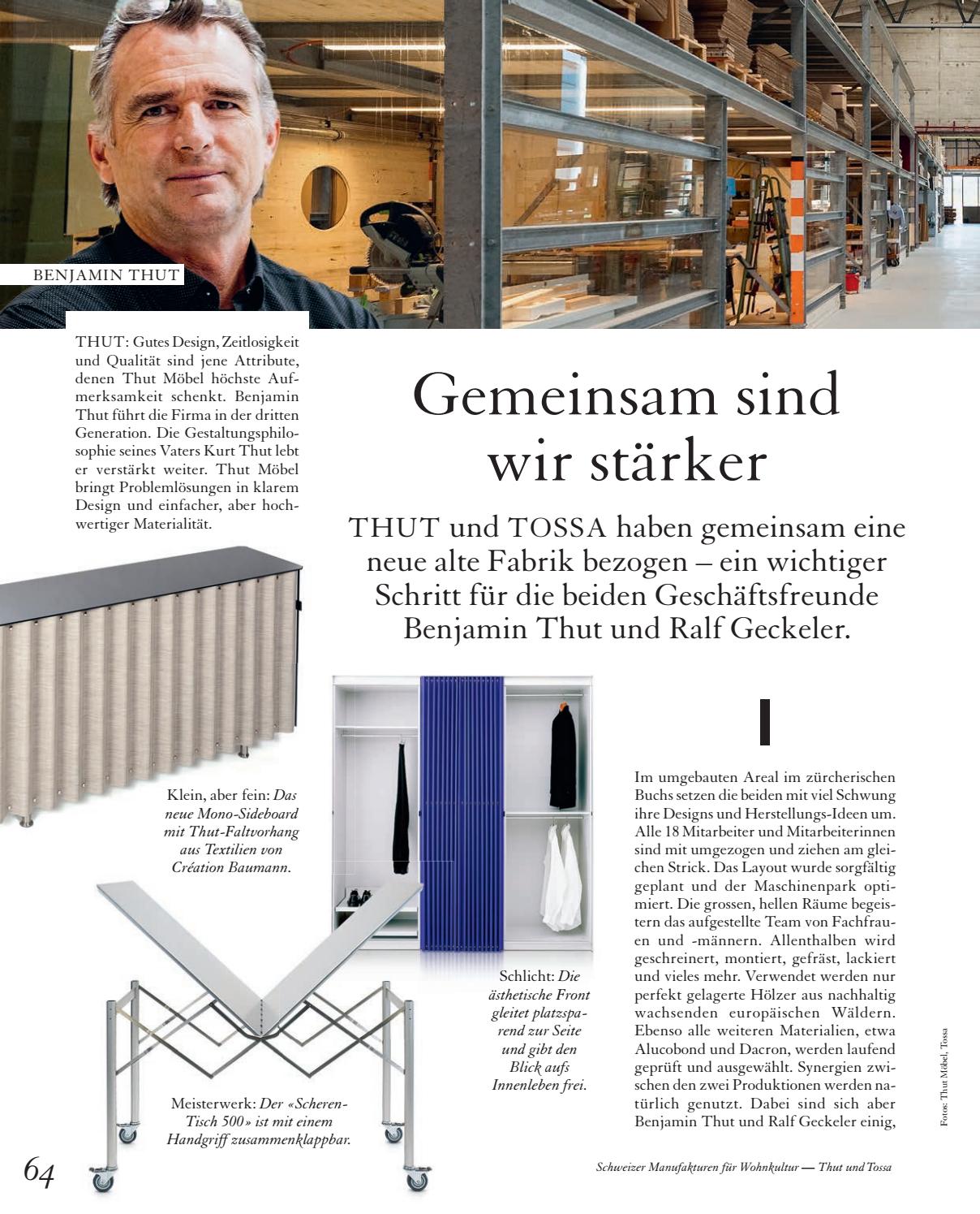Edit search Login / Register My account. Thut Möbel Die erfinderisch konstruierten und innovativ funktionierenden Möbel von Thut werden in Buchs produziert Die schweizer Produkte sind aufgrund deren Unabhängigkeit von modischen Strömungen besonders zeitlos Der FaltvorhangSchrank und die FaltvorhangFront gehören zu unseren Lieblingsstücken von Thut der klare und. Heute wird das Unternehmen in dritter Generation geführt Seit Juli 16 ist Thut Möbel im zürcherischen Buchs zu Hause und fabriziert sämtliche Produkte in der von Benjamin Thut umgebauten und optimierten Fabrikationshalle.