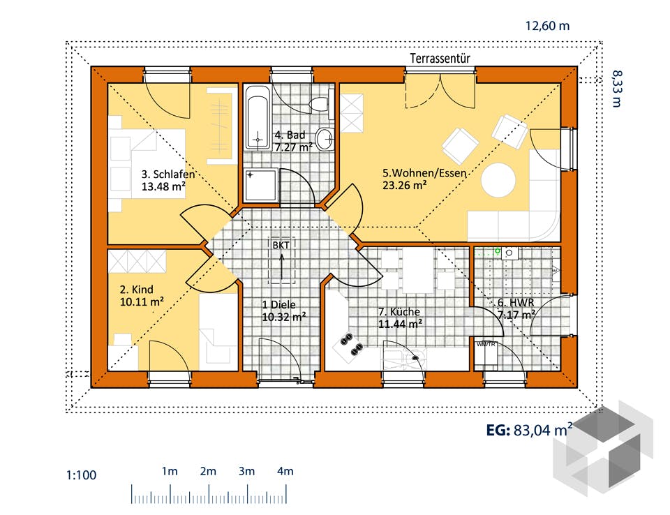 V105 Virtus Massivhaus Winkelbungalow Bungalow Massivhaus