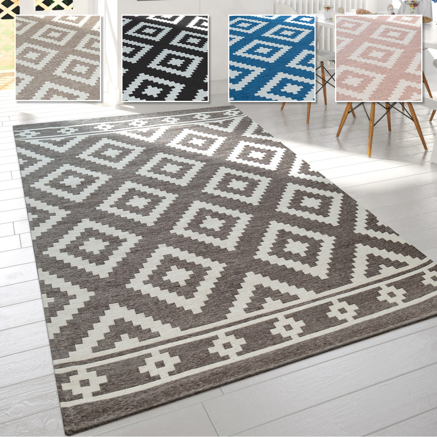 Wohnzimmer Teppich Skandinavischer Stil M Pastell Rauten Muster Flachgwebe Ebay