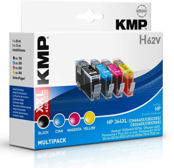 Kmp Tintenpatrone Kombi Pack Kompatibel Ersetzt Hp 364xl Schwarz Cyan Magenta Gelb H62v 1712 0005 Kaufen
