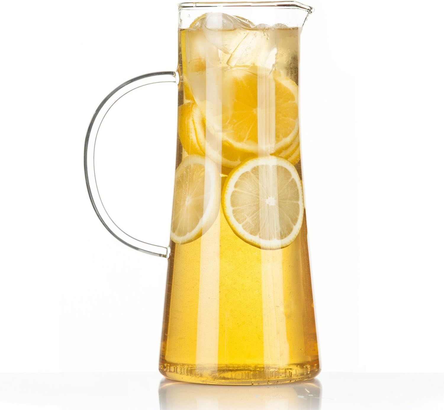 Wasserkrug Wasserkanne Krug 1 5 Liter Glaskrug Mit Filter Und Deckel Aus Edelstahl Getrankekaraffe Fur Heisses U Kaltes Wasser Eistee Kaffee Milch Saft Glaskaraffe Mit Griff Amazon De Kuche Haushalt