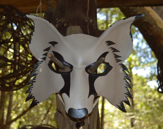 Silber Fuchs Weisse Wolf Ledermaske Von Faerywhere Etsy