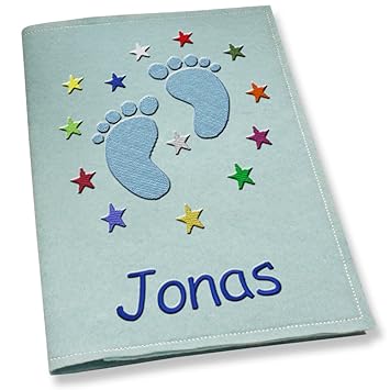 U Heft Hulle Junge Bestickt Mit Name Babyfusse Blau Bunte Sterne Filz Hellgrau Dunkelgrau Pink Hellblau Schwarz Blaugrau Untersuchungshefthulle Hellblau Amazon De Baby