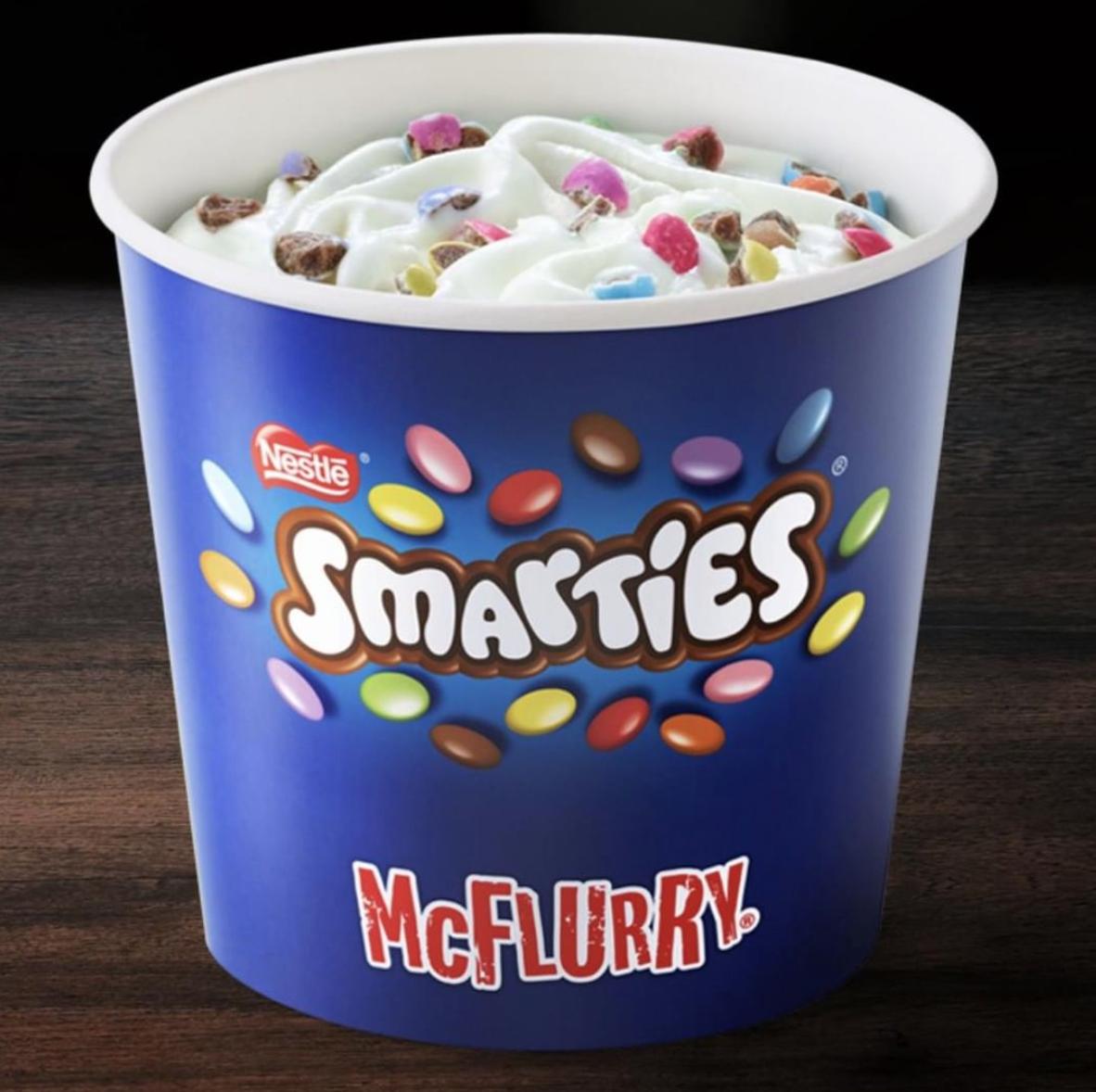 Featuring Smarties and a delicious chocolate sauce, the limited edition treat is available in both fullsized and the recentlylaunched mini versions, costing p for the mini, £129 for the regular. 1 bæger McDonald's McFlurry Smarties Mini 354 1492 110 g 560 g 070 g. McDonald’s is bringing back Maltesers, Smarties and Oreo McFlurries McDonald’s has a whole host of classic favourite menu items Their iconic happy meal, which recently added a new item to its boxes, the legendary Big Mac, which earlier this year added bacon for the very first time, and of course the food chain’s moreish chicken nuggets.