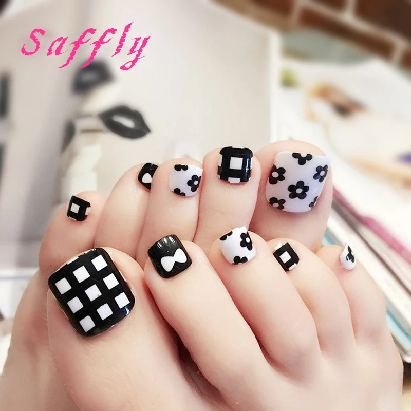 Saffly Neue Weiss Schone Sommer Zehennagel Schwarz Kleine Blume Fuss Patch 24 Stucke Von Box Erfrischende Farbe Fuss Nagel Fur Madchen Black Nail Color Box Of Nailswhite Nails Aliexpress