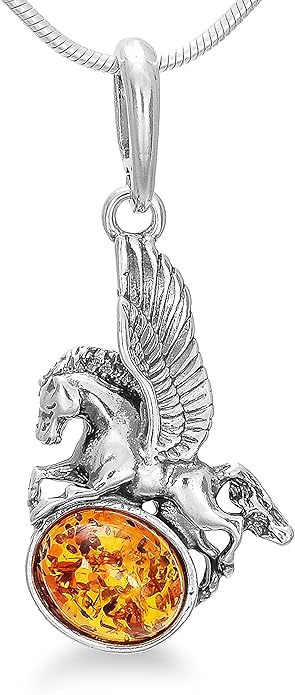 Anhanger Fliegendes Einhorn Krafttier Pegasus Aus Hochwertigem Sterlingsilber Und Bernstein Pferd Mit Flugeln Ab1258 Amazon De Schmuck