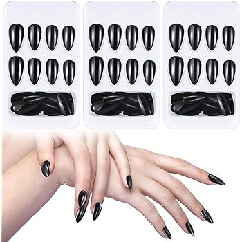 84 Stucke Falsche Nagel Kunstliche Stiletto Nagelspitzen Schwarz Glanzende Gefalschte Nagelspitzen Volle Abdeckung Lange Fingernagel Mit Feilen Stocke Kit 12 Grossen Fur Salon Frauen Madchen Dekoration Amazon De Beauty