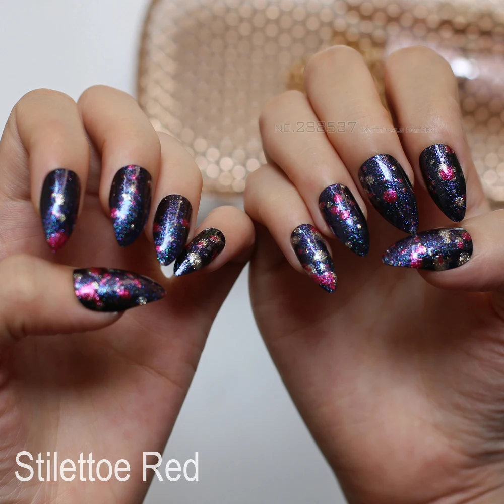 Blue Space 3d Flash Stiletto Long Artificial Full Cover Fake Nail Press On Ebay