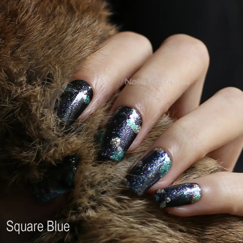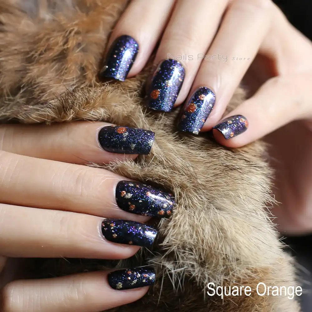 Fake Nails Long Square Starry Sky Nails Orange Dream Space 24pcs Blue Outer Space 3d Medium Stiletto False Nails Purple Galaxy False Nails Aliexpress