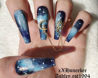 Fake Nails Galaxy Nails Press On Nails Glue On Nails Space Etsy
