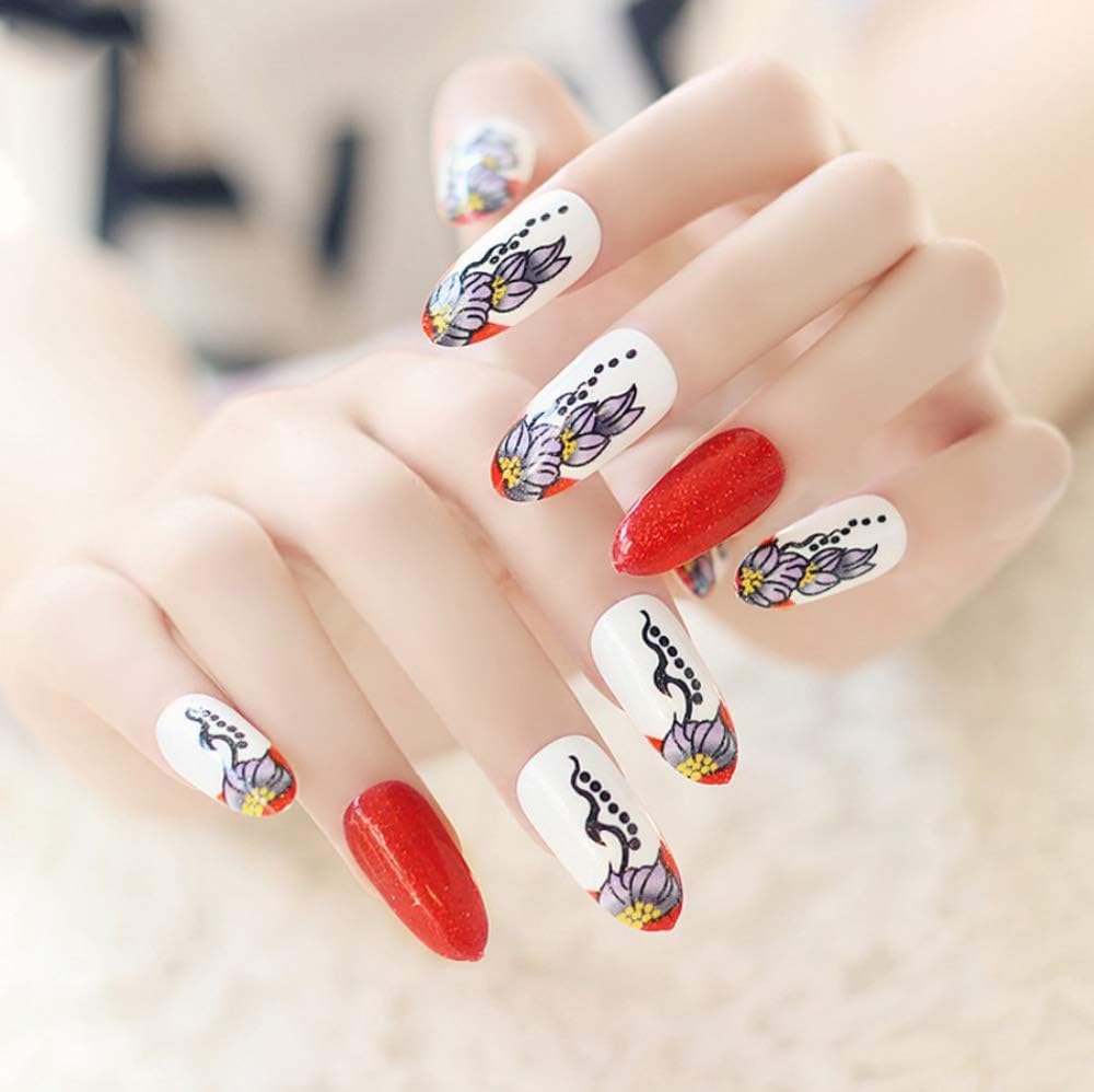 False Nails Long Nails Lace Totem Flower Design Artificial Beauty Nail Products Gel Nail Tips Amazon Co Uk Beauty