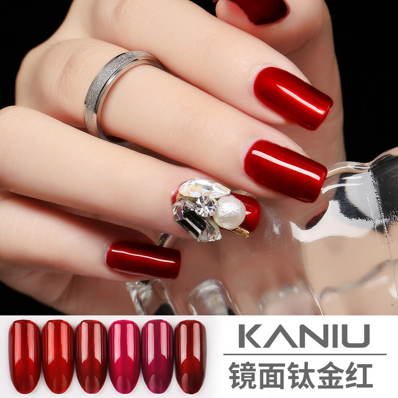 Ka Girl Nail Metal Space Mirror Red Nail Polish Set Long Lasting Tasteless Titanium Red Deep Wine Red Light Treatment Glue