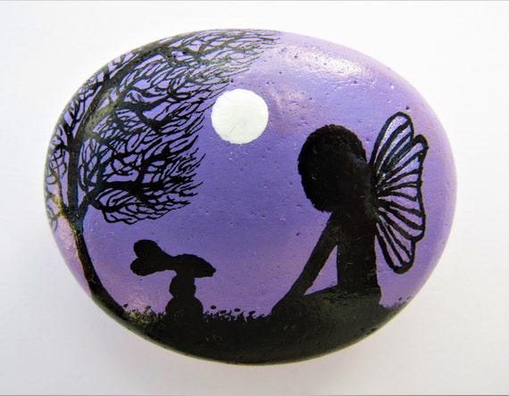 Painted Rock Fairy Silhouette Stone Art Daughter Gift Etsy