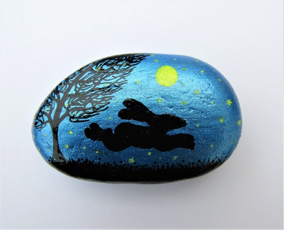 Painted Rock Hare Gift Rabbit Stone Magnet Bunny Pebble Art Etsy