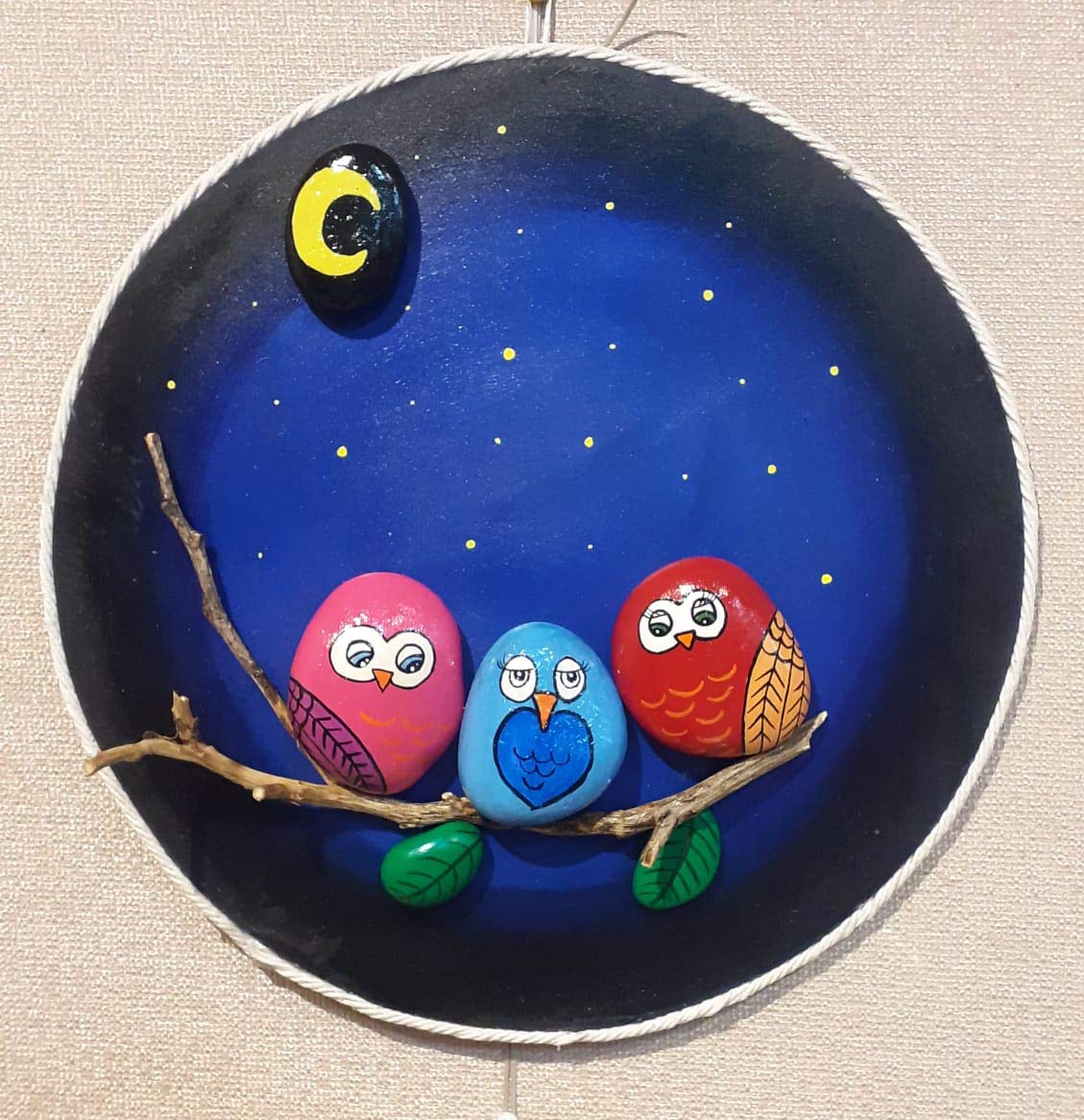 Hand Painted Pebble Art Owl Family Stone Wall Hanging Decor Etsy