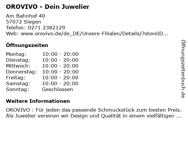 ᐅ Offnungszeiten Oro Vivo Juweliere Am Bahnhof 40 In Siegen