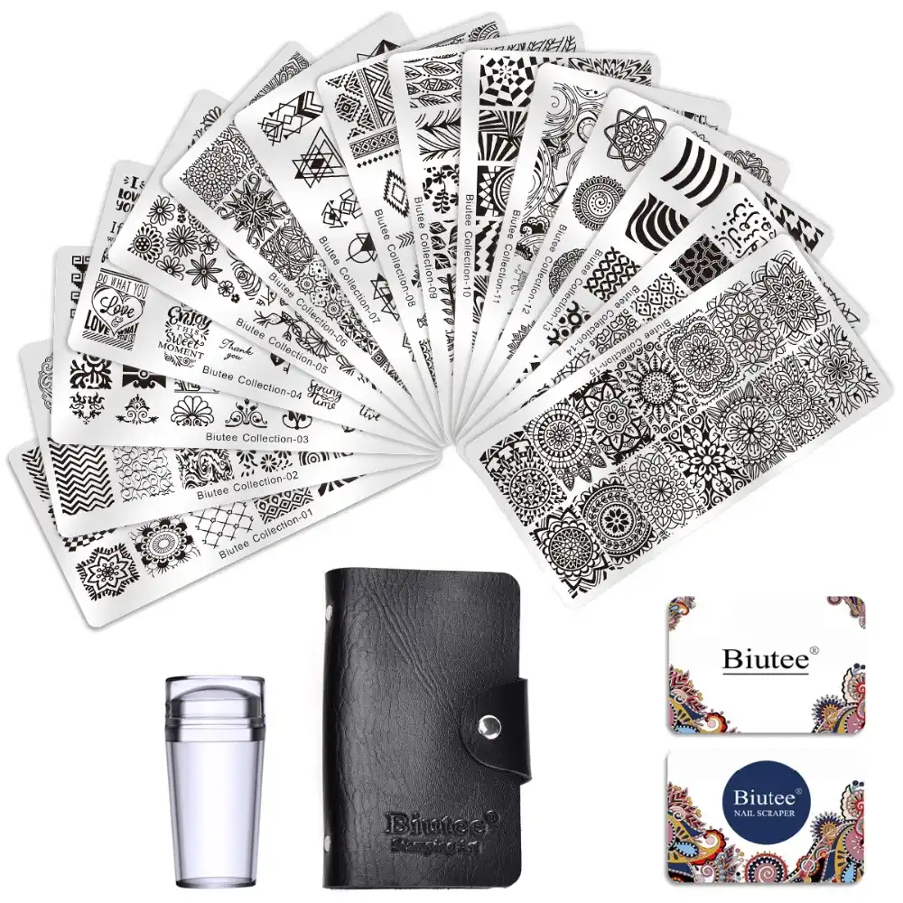 Biutee Nagel Stempel Platten Set 15 Platte 1 Stamper 2 Schaber 1 Lagerung Tasche Desgins Nagel Kunst Stanzen Platte Schaber Stamper Set Sets Und Bausatze Aliexpress