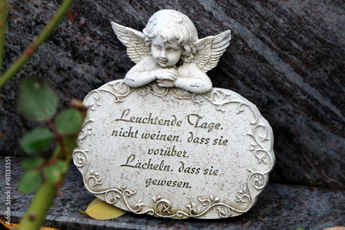 At The Cemetery German Sign With Bright Days Do Not Cry That They Are Past Smile That They Have Been Am Friedhof Engel Mit Trauerspruch Kaufen Sie Dieses Foto Und Finden
