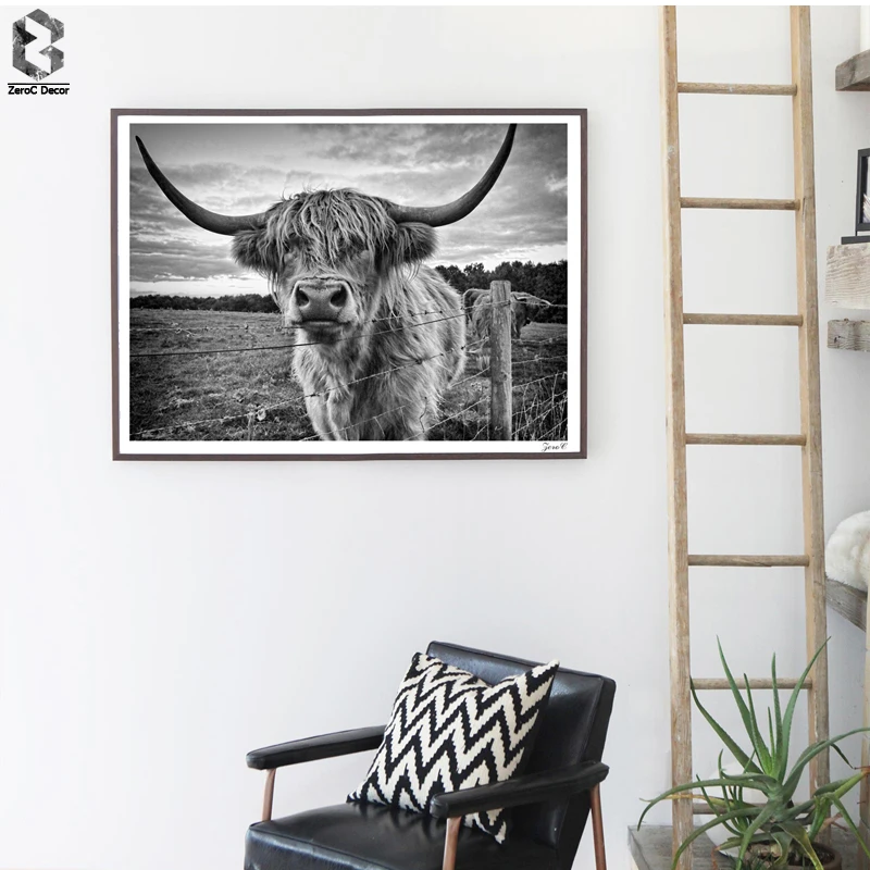 Highland Cattle Poster Und Drucke Schwarz Weiss Wand Kunst Leinwand Malerei Kuh Wand Bilder Fur Wohnzimmer Dekoration Picture For Living Room Wall Picturesposters And Prints Aliexpress