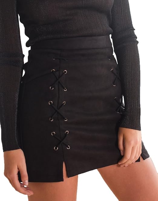 Wanyang Frauen Verband Rock Veloursleder Mini Rock Pencil Kurz Rocke Lace Up Minirock Amazon De Bekleidung