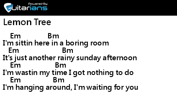 Online Gitarren Kurs 1 Die Ersten Akkorde Der DDur Griff;. Choose and determine which version of Lemon Tree chords and tabs by Peter Paul And Mary you can play Last updated on. And all that i can see is just a yellow lemon tree I'm turning my head up and down I'm turning, turning, turning, turning, turning around And all that i can see is just another lemon tree Sing!.