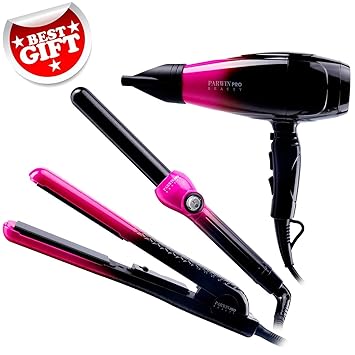 Parwin Pro Professionell Haarstyling Set 3 In 1 Geschenkset Fur Frauen Ionen Fohn Turmalin Keramik Lockenstab Und Glatteisen In Einem Paket 2 5m Kabel Mit Handschuh Reisekoffer Schwarz Pink Amazon De Beauty