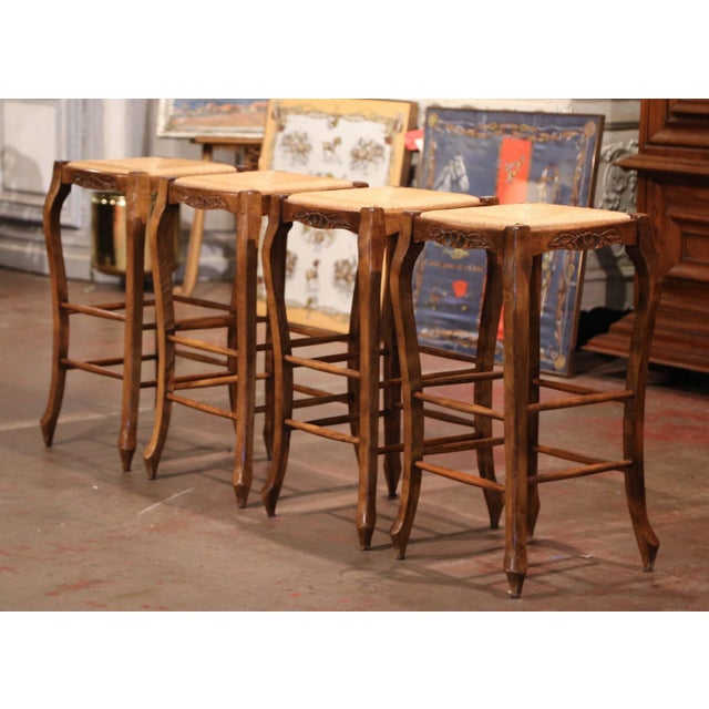 Louis Xv Country French Carved Bar Stools With Rush Seat Set Of 4 Chairish