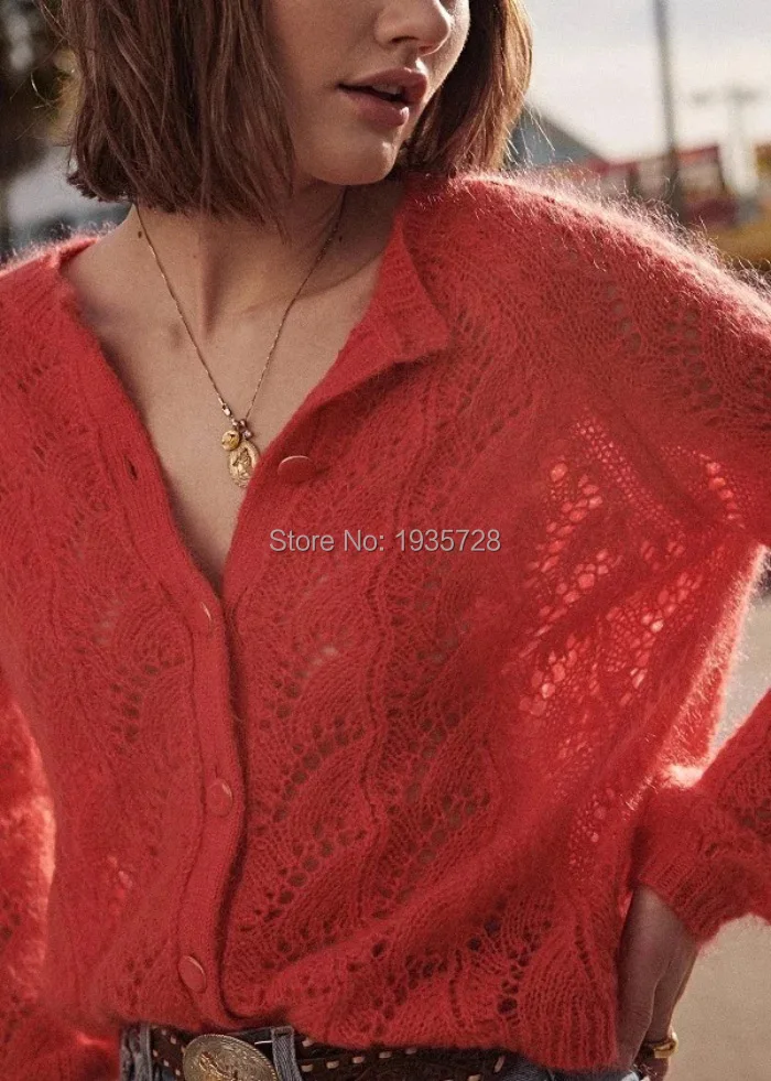 Rot Licht Grun Mohair Jumper Mit Aushohlen Hakeln Detail 19 Rundhals Langarm Wolle Stricken Strickjacke Strickjacken Aliexpress