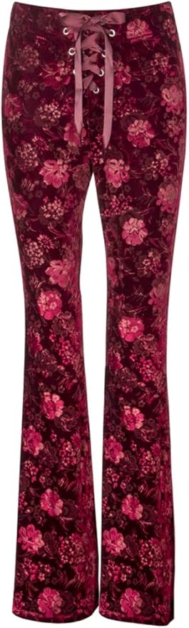 Glam And Gloria Weinrote Damen Samtschlaghose Mit Blumenmuster Schlaghose Bootcut Hose Mit Schlag Aus Samt Amazon De Bekleidung