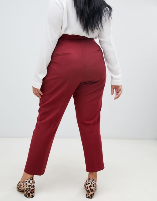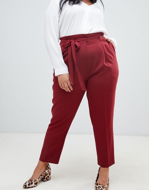 New Look Curve Weinrote Hose Mit Paperbag Taille Asos