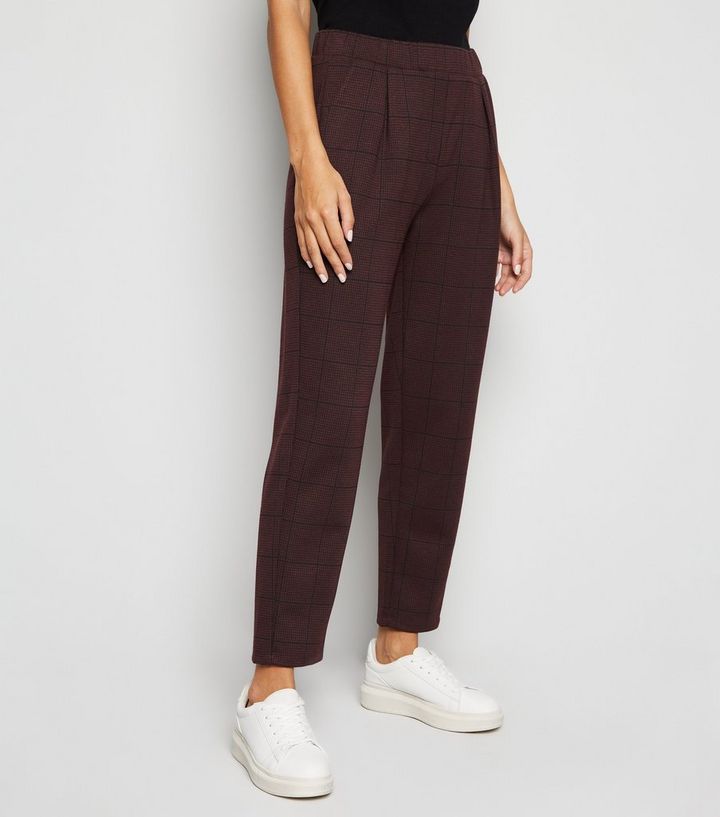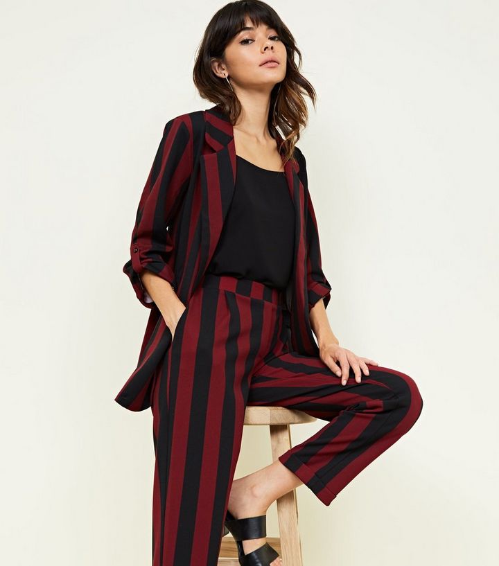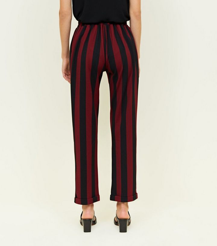 Weinrote Hose Aus Kreppstoff Mit Streifen Und Geradem Bein New Look