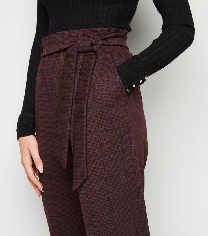 Weinrote Hose Mit High Waist Und Bindegurtel New Look