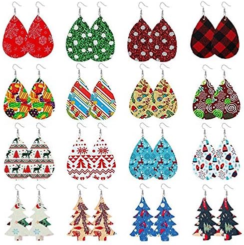 Finrezio 16 Paare Weihnachten Lederohrringe Fur Frauen Tropfen Ohrringe Leicht Weihnachtsbaum Weihnachtsmann Schmuck Polka Punkt Karierte Ohrringe Stil A Amazon De Schmuck