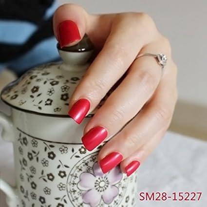 24 Hot Nail Refined Sugar Lovely Colors Fake Nails Middle Paragraph Shiny Surface Crimson Amazon Co Uk Beauty
