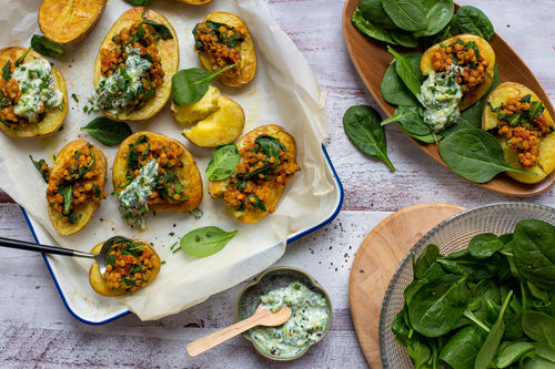 Gefullte Ofenkartoffeln Mit Roten Linsen Und Zucchini Joghurt Marley Spoon