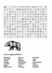 Vorbereitende Unterrichtssequenz „Tiere in der Altsteinzeit“ 1 Lerndialog Kennenlernen der Tiere in der Altsteinzeit Min LP Wir wollen in den nächsten Minuten über die Tiere der Altsteinzeit sprechen Es stellen sich uns dabei eine Reihe von Fragen, die wir gemeinsam zu beantworten versuchen. Interaktives Geschichtsportal für Kinder und Jugendliche von der Vorgeschichte der Menschheit bis in das Zeitalter der Nationalstaatsgründung, das neben Darstellungstexten, interaktive Zeitleisten, dynamische Karten, sowie Quiz, Aktions und Medientipps bietet Die öffentlich unterstützte Seite schaltet aus Finanzierungsgründen Werbung. Der Arbeitsauftrag zu diesem Rätsel lautet "Finde die versteckten Wörter in diesem Suchsel"Dieses Unterrichtsmaterial steht Ihnen zum kostenlosen Download im PDFFormat auf dieser Seite zur Verfügung Zum Download Rätseltyp Suchsel / Wortgitter / Wortsuchrätsel / Buchstabensalat.