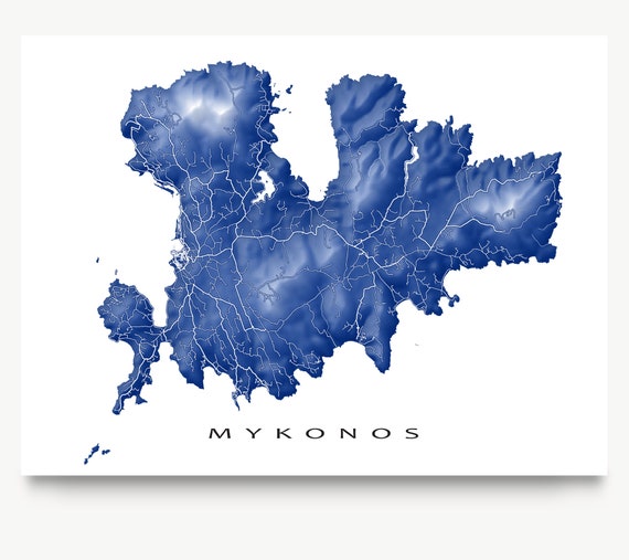 Mykonos Map Print And Mykonos Greek Islands Landscape Art Etsy