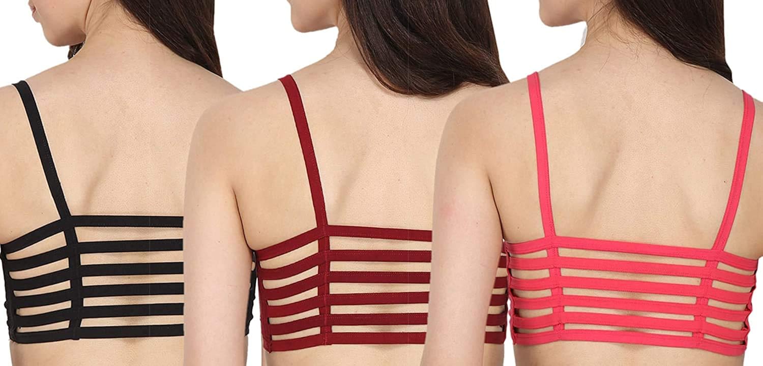 Buy H M Enterprises 6 Strap Padded Trio Combo Bra With 6 Stripped Back Fit For T Shit Removable Pads Size Free 28 To 34 At Amazon In