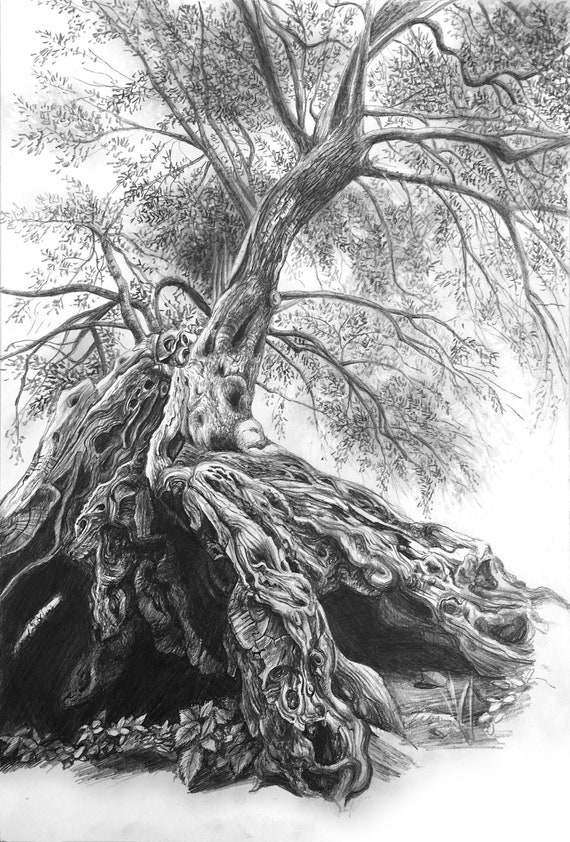 Olive Monumental Baum Bleistiftzeichnung Auf Papier Etsy