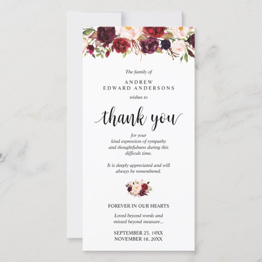 Beerdigung Bereavement Beileid Burgund Floral Dankeskarte Zazzle De