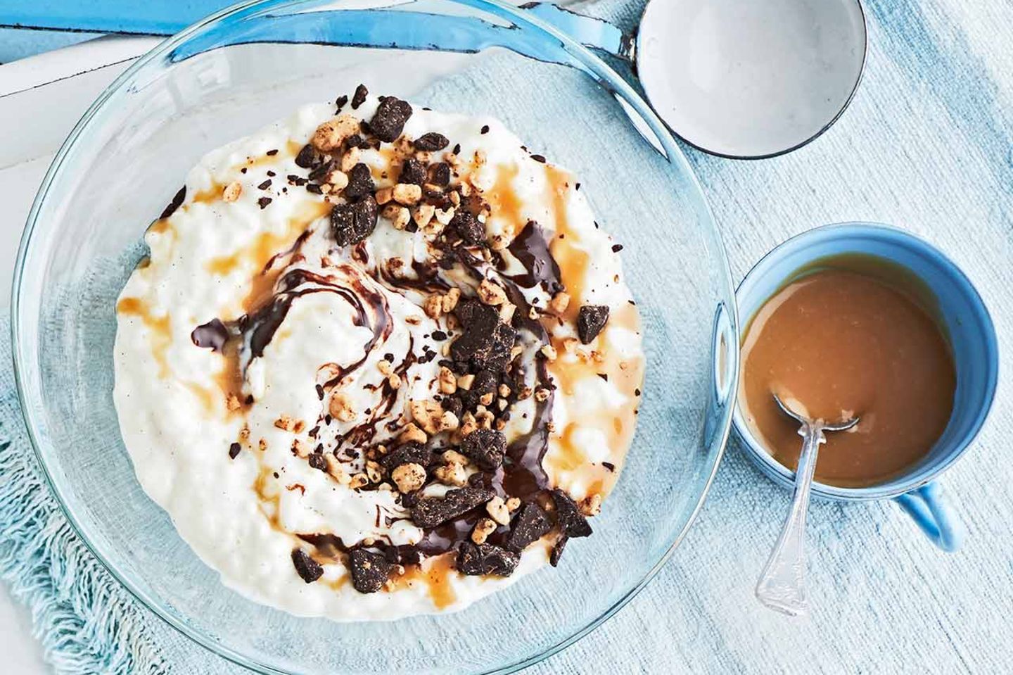Karamell Milchreis Mit Schoko Erdnuss Topping Thermomix Rezept Essen Und Trinken