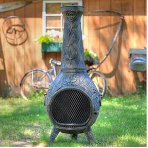 Blau Hahn Rose Stil Holz Outdoor Metall Terrassenofen Kamin Gold Accent Farbe Amazon De Garten