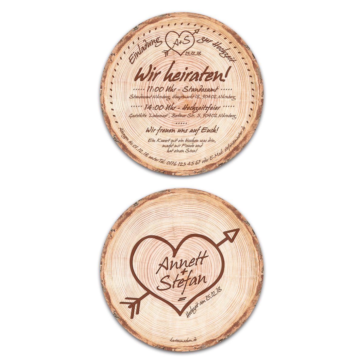 Baumscheibe Holz Motiv 30 X Runde Hochzeitseinladungen Einladungskarten Hochzeit