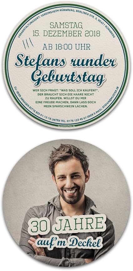 30 X Runde Geburtstag Einladungskarten Foto Einladung Bierdeckel Motiv Auf M Deckel Amazon De Burobedarf Schreibwaren