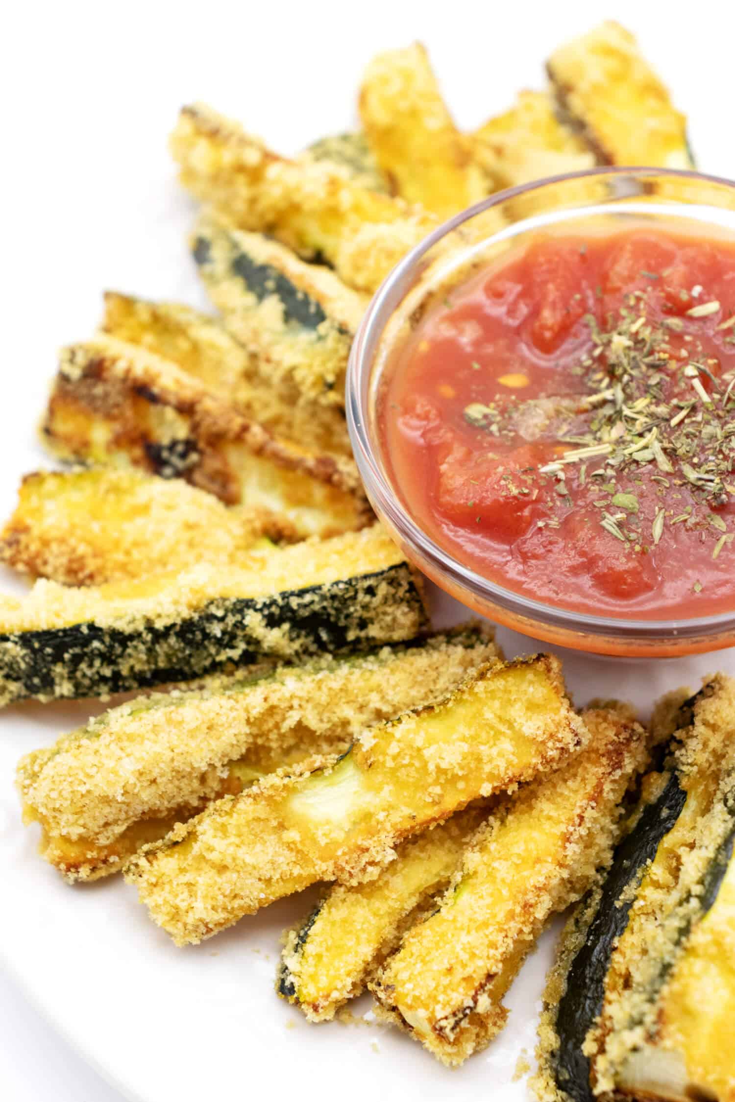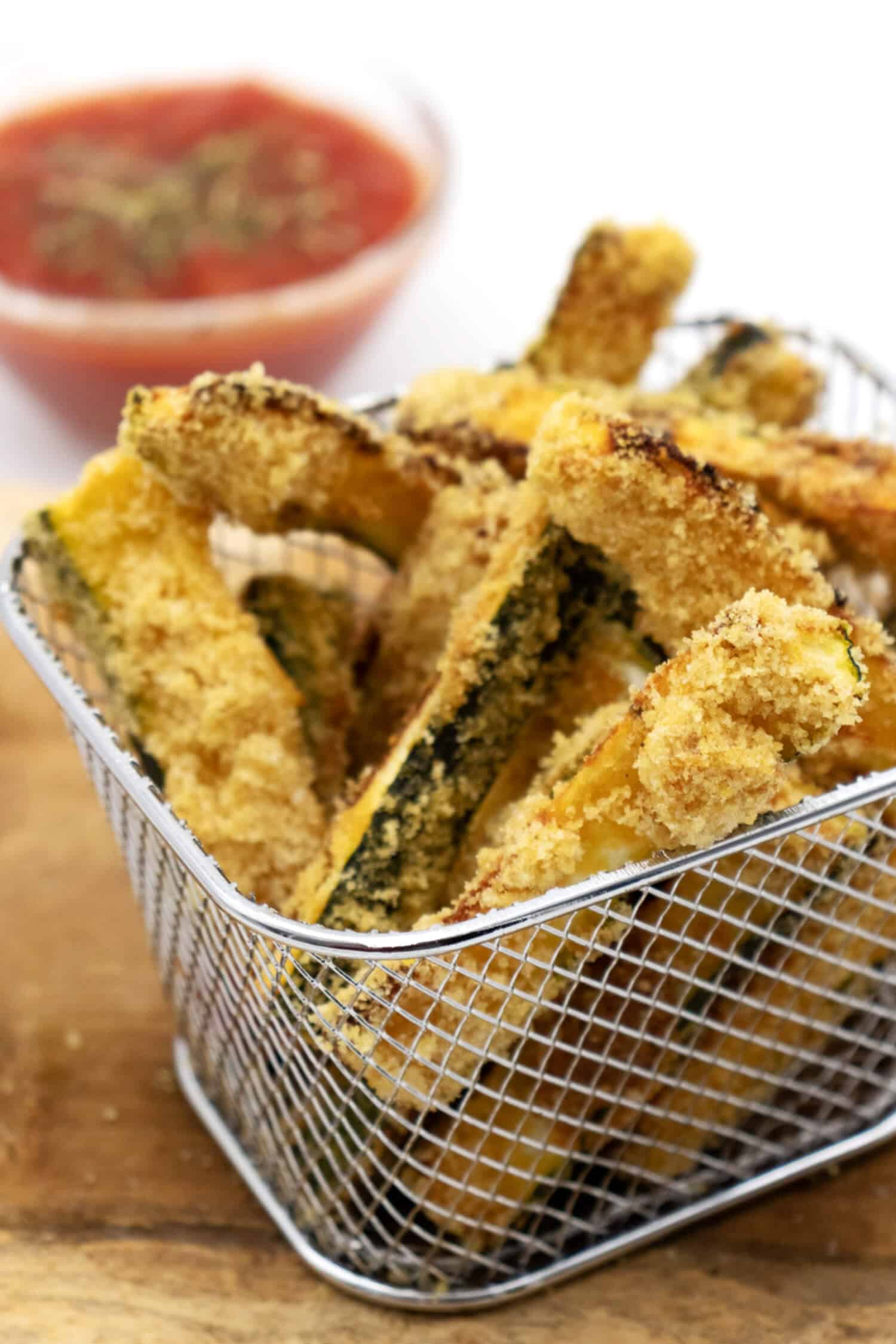 Dip zucchini sticks into eggs then into bread crumb and cheese mixture, a few at a time Place the breaded zucchini in a single layer onto the cooling rack and spray more cooking spray on top Bake at 425 for about 15 minutes, or until golden brown Serve with Ranch or Marinara sauce for dipping. Heute gibt es ein Rezept für leckere Zucchini Pommes für euch Es ist eine gesunde und leckerere Variante der normalen Pommes und fast genauso schnell zubere.