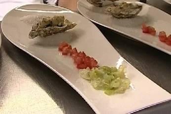 Mit Schafskase Uberbackener Apfel Auf Spinatblattern Und Honigsauce
