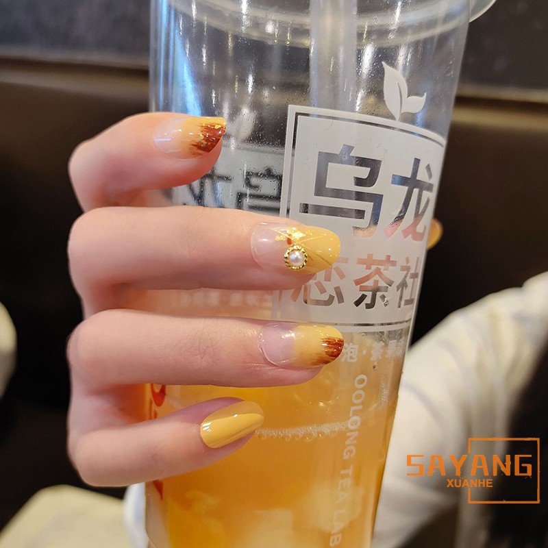 Sayang Autumn Wind Honeymoon Nail Fake Nail Dress Bride Elegant Medium Long Nails Ing Nail Product Shopee Singapore